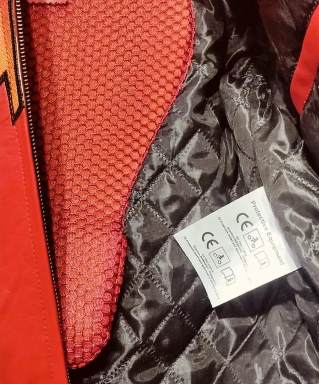 Blouson en cuir avec protection amovible au épaules, coudes et dorsale.